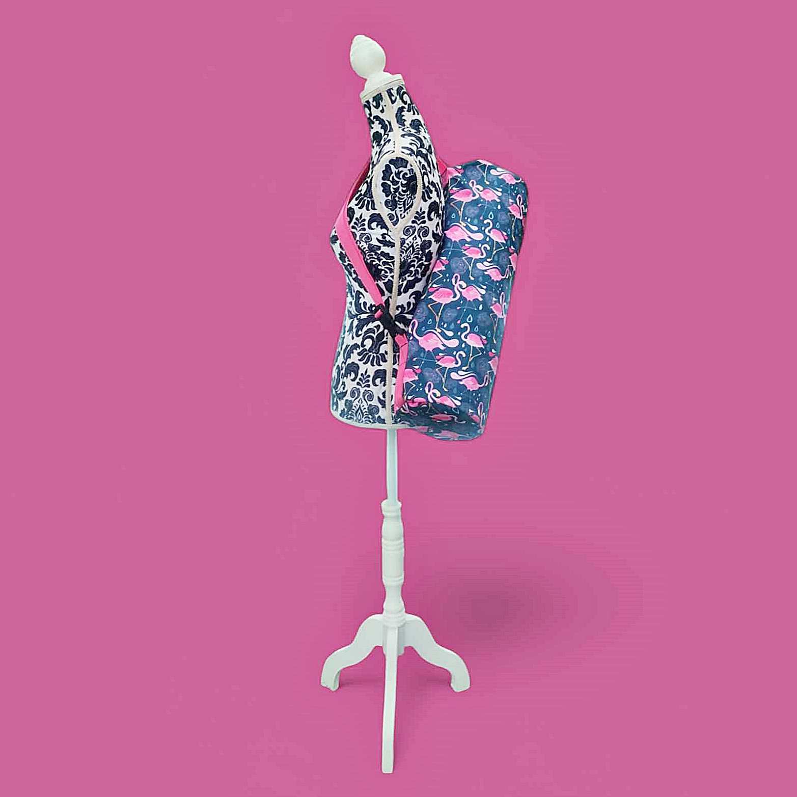 Nie pamiętam już, ile różnych produktów powstało w naszej pracowni z tej tkaniny: kosmetyczki, torby podróżne, plecaki… Ale żaden nie prezentował się tak pięknie, jak ta oto właśnie torba na matę do jogi.