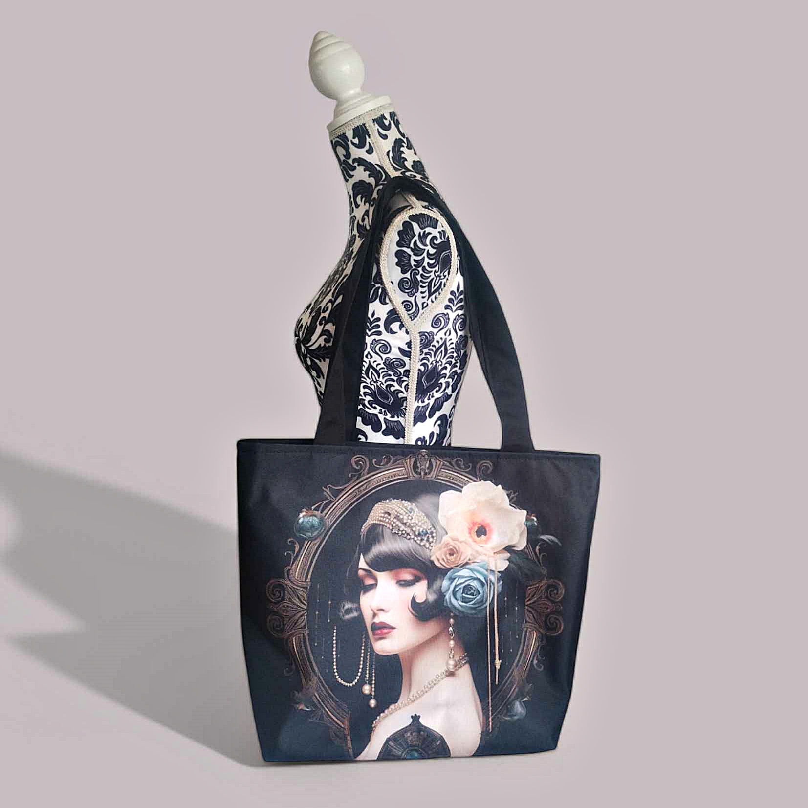Mamy nadzieję, że podoba Ci się nadruk na przodzie tej torby przestawiający śliczną dziewczynę – damę w stylu art-deco. Jeśli jednak chcesz podejrzeć inne nadruki, wciśnij ten przycisk: